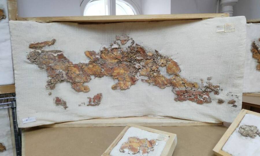 За полгода реставраторам удалось смонтировать на 21 планшет 56 фрагментов росписей разного размера. Теперь все фрагменты с изображением мраморировок могут представляться на выставках, сообщили в Минкульте.