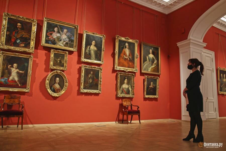 В следующем помещении разместили портретную галерею Романовых. Ранее в этой зале располагались покои камер-фрейлины Анны Степановны Протасовой, которая в свое время умудрилась одновременно быть близкой подругой Екатерины II и оставаться в хороших отношениях с Павлом Петровичем, пожаловавшим ей орден Святой Екатерины 2-й степени.