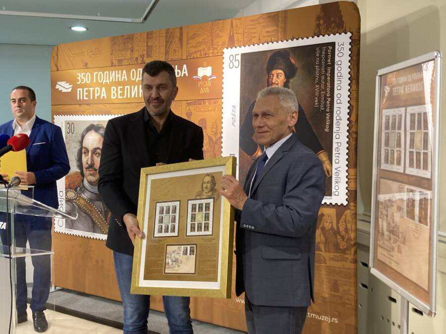 Государственный Эрмитаж и Почта Сербии выпустили две тематические марки в честь 350-летия Петра I. На церемонии гашения, прошедшей 9 июня в Белграде в Музее Почты Сербии, присутствовали и.о.директора Почты Сербии Зоран Джорджевич, Посол России в Сербии Александр Боцан-Харченко и руководитель Русского научного института в Белграде Ирина Антанасиевич.