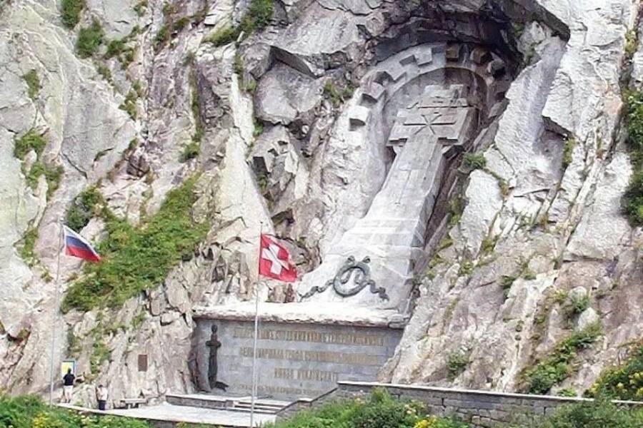 Монумент в честь сподвижников Александра Суворова в Андерматте отчистили от синей и желтой краски. Монумент залили ей в мае неизвестные вандалы.