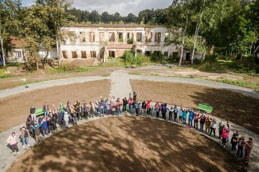 Уже три года подряд на территории усадьбы работают волонтеры. С их помощью был расчищен парк, очищены пруды, проведено освещение. В летний сезон по прудам уже катаются на лодках, а зимой — на коньках.