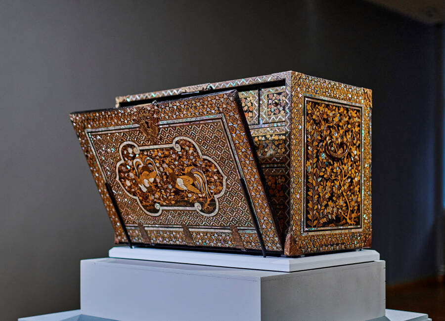 Другой важнейший памятник из восточной коллекции, отреставрированный в центре, – шкатулка, которая относится к числу ранних образцов японских экспортных лаков в стиле намбан, выполненных для европейского рынка.