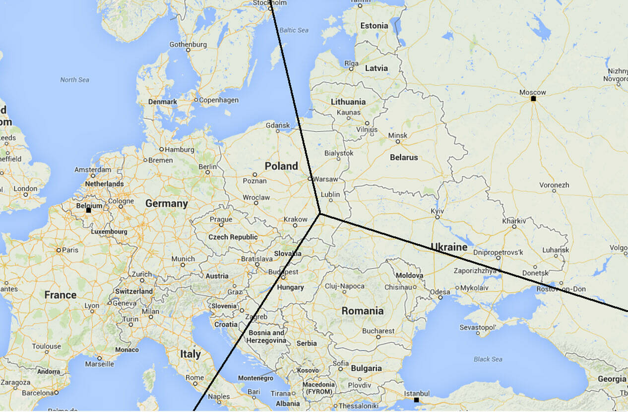 Учитывая расстояния до основных населенных/экономических центров Европы, мы можем увидеть следующие границы с европейской стороны: