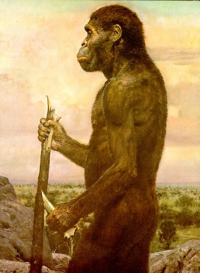 Австралопитеки — это вымершая группа приматов, обнаруженная в Южной Африке, включающая крупных человекоподобных прямоходящих обезьян. У них был небольшой мозг и массивные челюсти. Они умели передвигаться на двух ногах в выпрямленном положении и держать в руках палку или камень. Эти двуногие создания, размером с шимпанзе, имели множество черт, делающих их похожими на человека: форму зубов, строение черепа, форму таза. Однако объем их мозга не превышал 55 см³, как у современных человекоподобных обезьян. Австралопитеки существовали примерно с 4 до 2 миллиона лет назад. Считается, что австралопитеки были одними из первых существ, стоящих у истоков человеческой эволюции. Некоторые из последних австралопитеков могут считаться непосредственными предками человека. В то же время рядом с ними на той же территории обитали первые представители вида Homo (человек). Их морфологические отличия от австралопитеков не были ярко выраженными, но их мозг был крупнее. Австралопитеки использовали для охоты только предметы природы, в то время как Homo habilis человек умелый научился создавать орудия труда из камня.