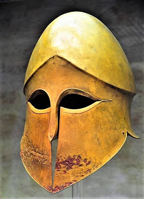 Шлем гоплита. Относится к коринфскому типу. Исторический музей Мюнхена, Германия