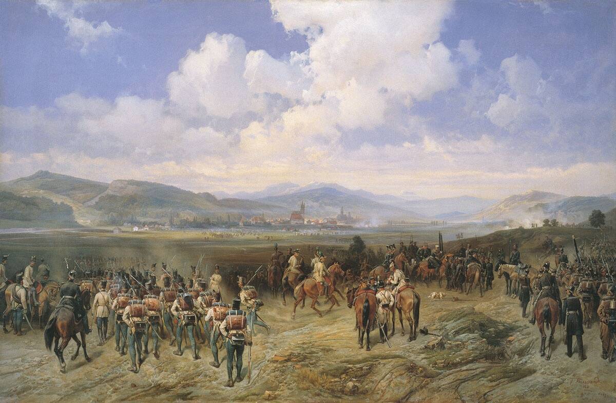 Австрийцы направили на венгерский фронт часть войск Радецкого, лучших в австрийской армии. На пост главнокомандующего австрийскими войсками с чрезвычайными полномочиями был назначен генерал Гайнау, известный своей жестокостью в Италии, где он получил прозвище «гиена». Но все же только собственными силами австрийское правительство не надеялось одержать победу над венграми. Франц-Иосиф обратился к Николаю I с просьбой о помощи в подавлении венгерской революции. Русский император был заинтересован в том, чтобы погасить пожар в соседнем доме, пока он не перекинулся на его собственный. В начале июня русские войска под командованием князя Паскевича перешли границу с Венгрией. Из Галиции наступали около 100 тысяч, из Валахии около 38 тысяч солдат.