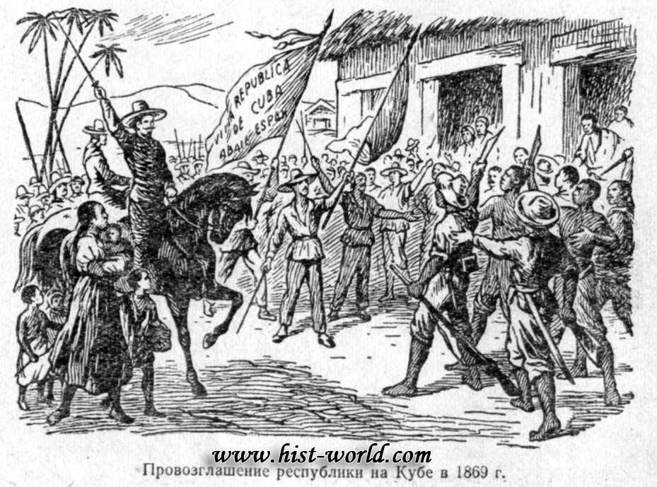 С Испанией кубинцы воевали трижды. Первая война (Большая) продолжалась 10 лет (1868–1878) и была в какой-то мере отзвуком Гражданской войны в США – одним из её поводов стало рабство, сохранявшееся на острове. Считается, что причиной также была революция в самой Испании (1868), хотя также вероятно, что это совпадение дат: заговор будущих революционеров возник за год до революции в Испании.