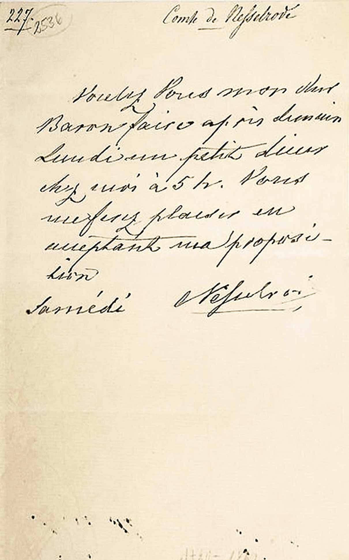 Нессельроде доставалось абсолютно за все: за то, что он был немцем, за то, что был маленького роста, за богатую жену, за то, что имел вкус к жизни и умел жить. Современник графа, писатель и публицист князь Владимир Петрович Мещерский, человек крайне правых взглядов, писал о нем: "...не мал, и не дюжин был, несмотря на свой маленький рост, похожий на Тьера (Адольф Тьер, известный французский политик, был тоже невысокого роста. — Прим. авт.), знаменитый граф Нессельроде, министр иностранных дел. Он был и ловок, и умен, но, к сожалению, у него было два крупных недостатка: он не был русский по душе и совсем ею не роднился со своим монархом, а во-вторых, был феноменальный эгоист-эпикуреец. От того про него говорили, что он больше сделал для кулинарного искусства и для цветов, чем для иностранной политики России".