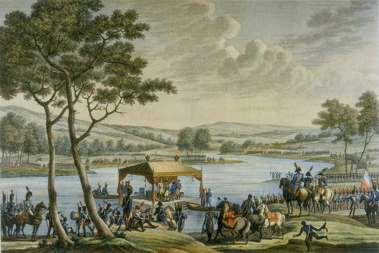 Встреча Александра I с Наполеоном на Немане у Тильзита 13 (25) июня 1807 года. Гравюра Ф.-Л. Куше по оригиналу Свебаха