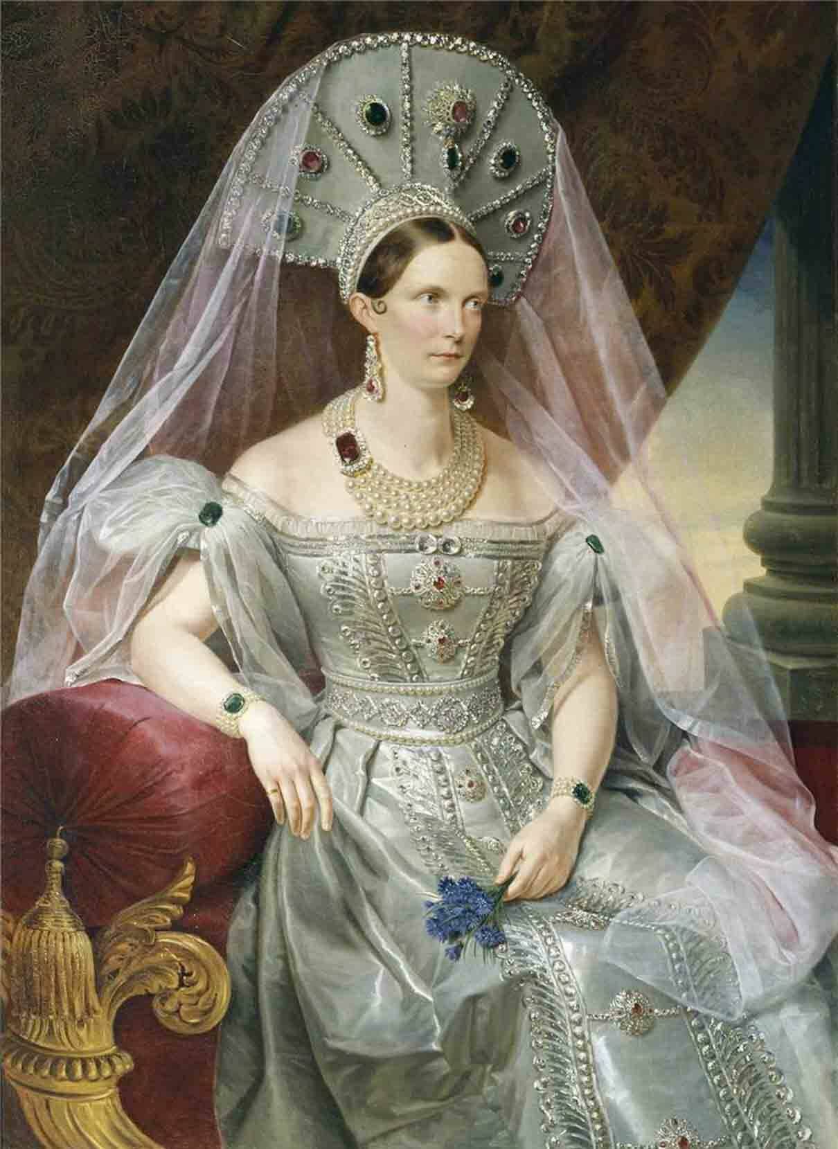 Ф. Крюгер. Портрет императрицы Александры Федоровны в придворном русском платье. 1852–1857 годы
