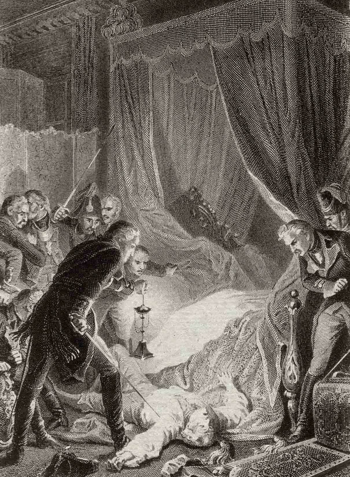 Ж.-Ж. Утвайт. Смерть Павла I. Гравюра по рисунку Ф.-Э.-А. Филиппото. Первая половина XIX века