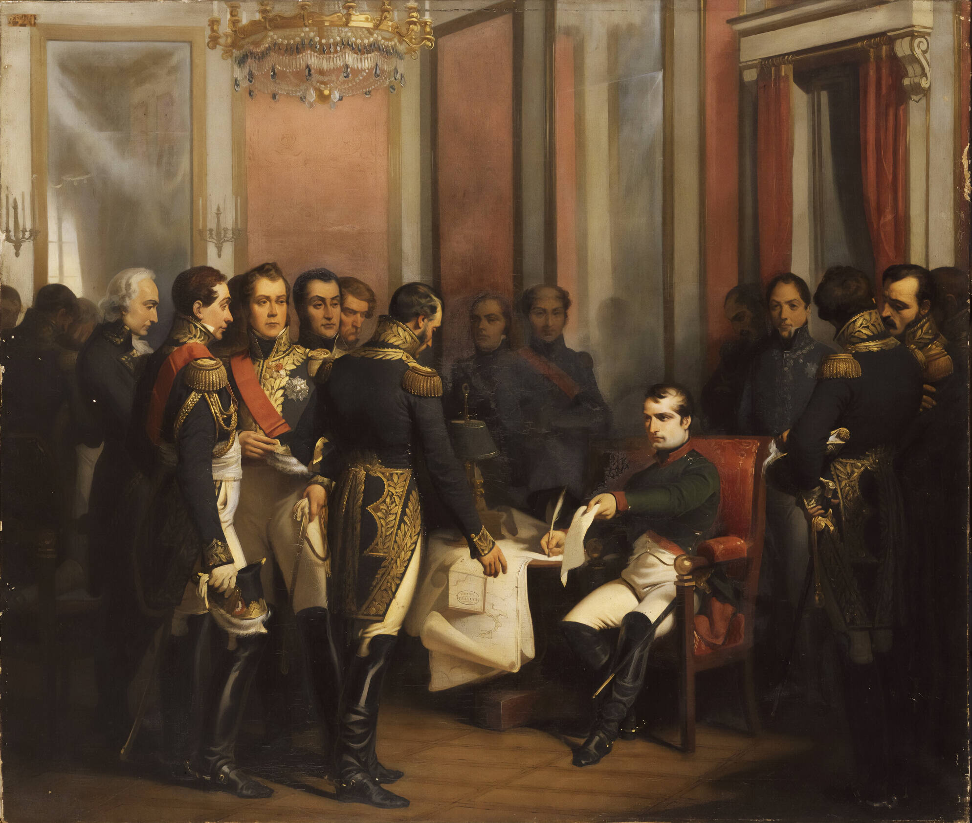 Достаточно напомнить, даже оставляя в стороне второстепенные державы, что после Ватерлоо немедленно во Францию вторглись армии: австрийская (230 тысяч человек), русская (250 тысяч человек), прусская (310 тысяч человек), английская (100 тысяч человек). Составляться эти армии начали с большой поспешностью тотчас после получения известий о высадке Наполеона на юге Франции.