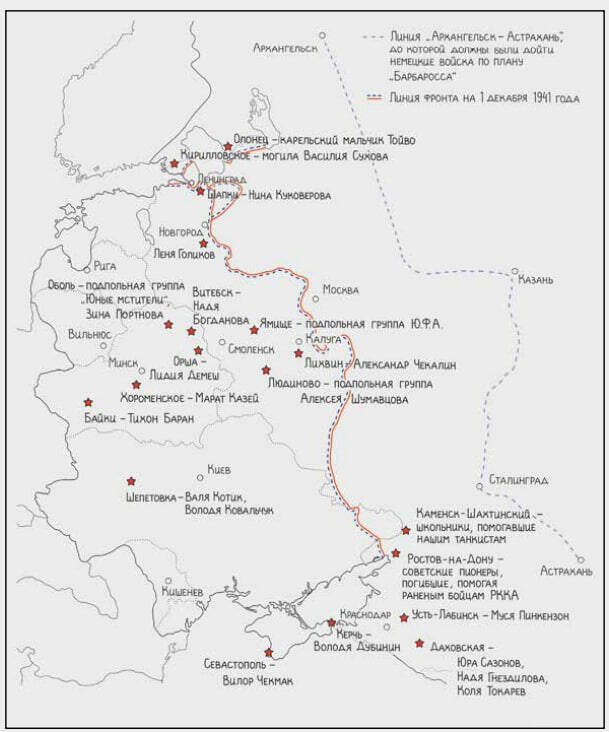 Места подвигов пионеров и комсомольцев — участников партизанского движения и подпольщиков