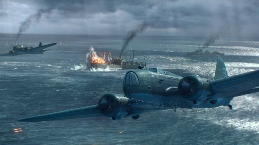 Самое главное, чем берет зрителя картина об авиации, – масштабные действия в воздухе. С этим в новой киноленте Константина Буслова полный порядок. Сражения морской авиации по умолчанию зрелищны, а уж ночное небо немецкой столицы, рассекаемое лучами прожекторов, пожалуй, запомнится после просмотра фильма в первую очередь. Здесь уместно сравнение даже не с другими картинами о военной авиации, а с видеосъемками из космоса, – настолько зрелищны кадры.