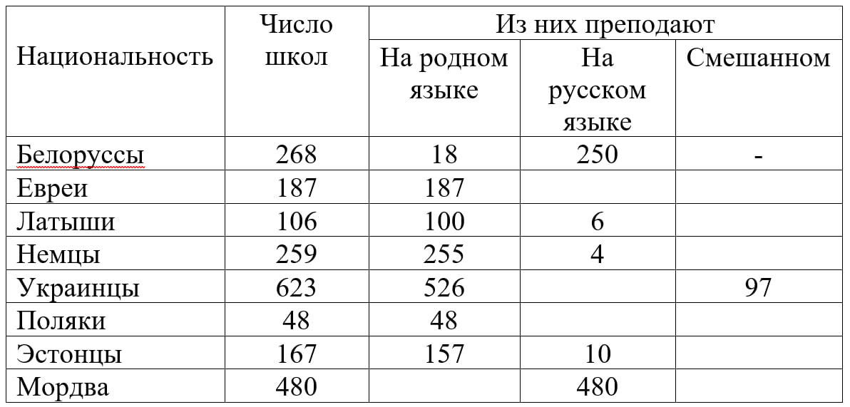 В итоге, когда на местах без предварительной разъяснительной кампании производилось голосование на предмет желания или нежелания население иметь школу на украинском (белорусском) или на русском языке, то «вследствие упомянутых выше причин население, естественно, голосует за школу на русском языке» [49].