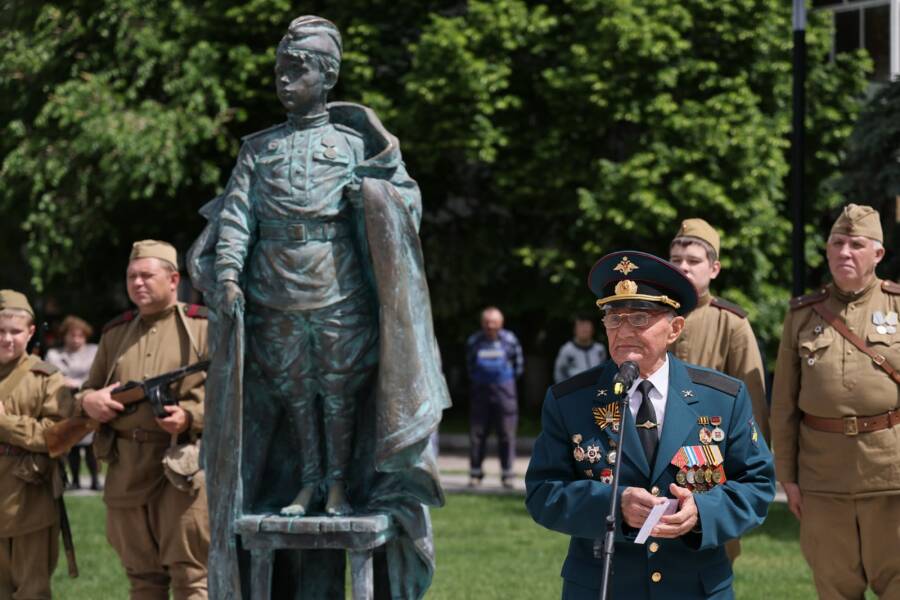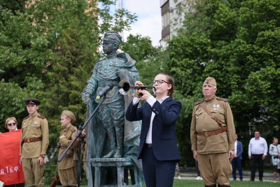 Именно такой трогательный образ сына полка воплощен в Мемориале, который тожественно открыт 1 июня в Международный день защиты детей рядом с новым военно-историческим Музеем «Юные защитники Родины» в Курске. Обновленная экспозиция, и монумент, созданы Российским военно-историческим обществом при участии администрации Курской области. Музейно-выставочный центр содержит уникальные архивные документы, артефакты, фотографии, пронзительные истории юных защитников Родины.