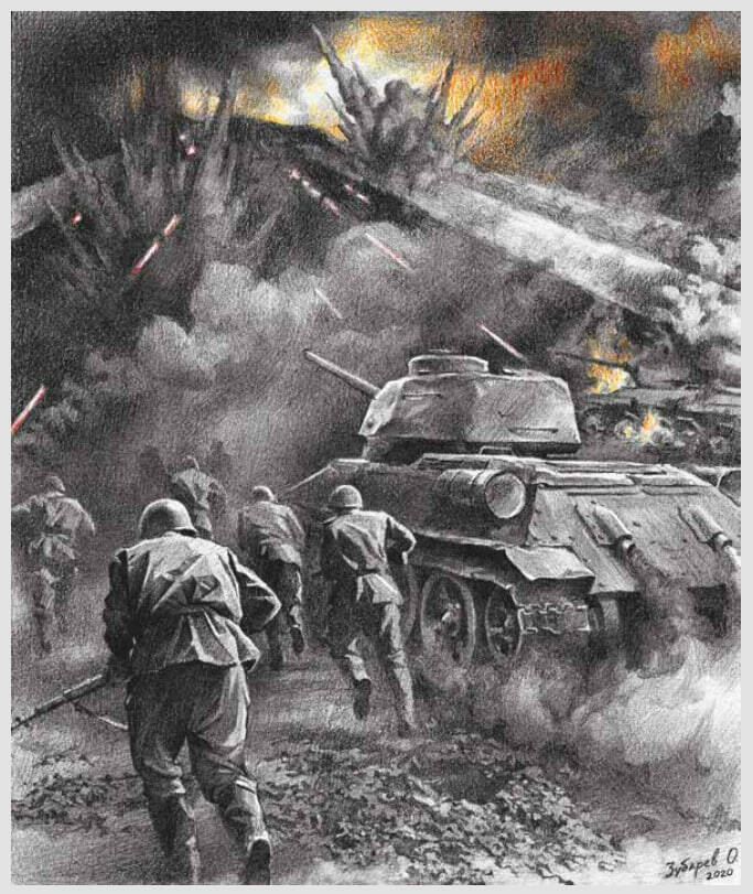 …Пройти на тракторах с орудием через берлинские улицы, через пекло городских боев, было крайне сложно. Пехота нас не прикрывала. Через канал проехали по мосту, и тут у нас убило командира орудия. Двинулись дальше. Вокруг стрельба, жуткий гро‑ хот, да такой, что даже лязг трак‑ торных гусениц не слышно было.