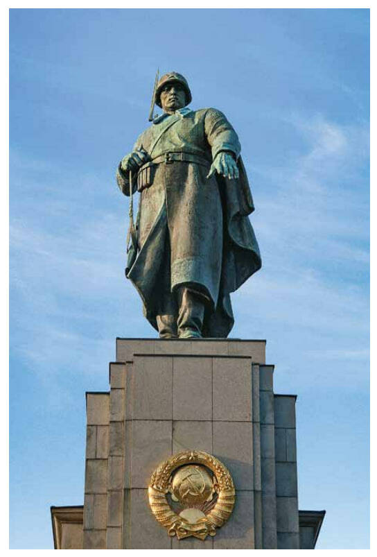Центральная фигура советского мемориала у рейхстага. Наш боец уходит домой, на Родину, и прощается со своими товарищами, навсегда оставшимися лежать в немецкой земле.