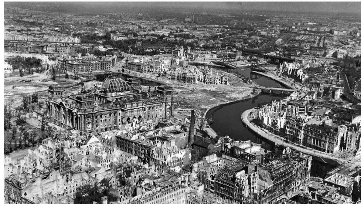 Центр Берлина весной 1945 года. Ещё до штурма город был сильно разрушен налётами американской и британской авиации.