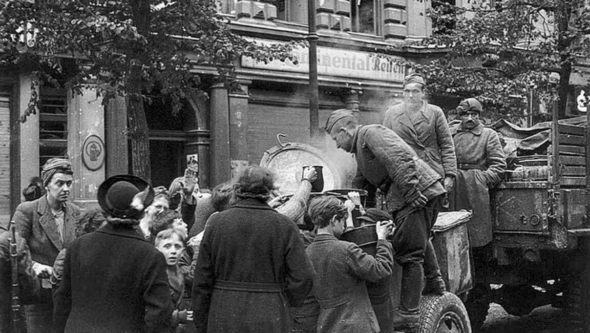 И несмотря на это, Красная Армия выделила населению Берлина большое количество продовольствия! Прокормить двухмиллионный город было крайне сложно. Еды всё равно было в обрез. Но Советский Союз целенаправленно кормил мирное население Берлина, а не бросил его на произвол судьбы. Такое доброе человеческое отношение советских бойцов к мирному населению Германии сделало многих немцев нашими друзьями на долгие 70 лет. К сожалению, сейчас эти добрые дела и эта дружба забыты.