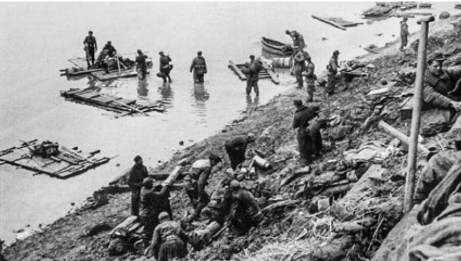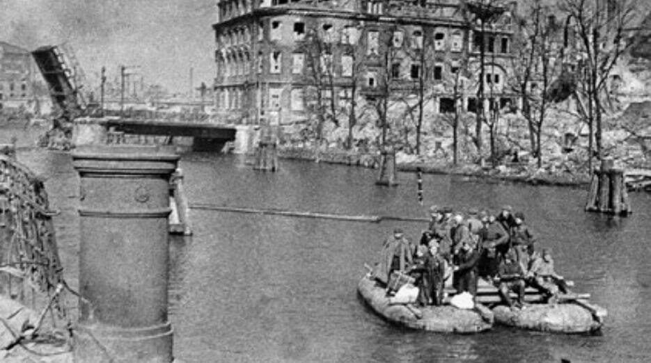 Немцы пытаются уплыть из Хайлигенбайльского котла на плотах.