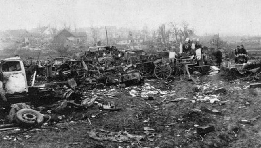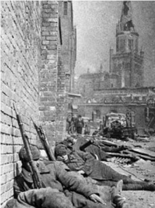 Наши бойцы спят прямо на улице после взятия Кёнигсберга.