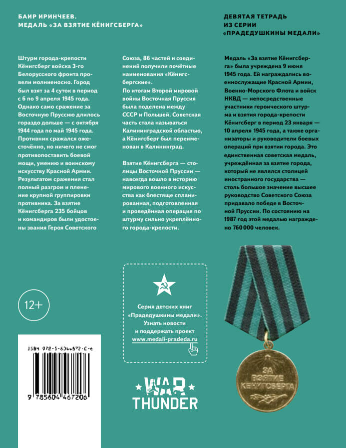 Но Вторая мировая война ещё на закончилась. Сталин пообещал нашим западным союзникам, что после победы в Европе СССР начнёт войну против Японии, чтобы закончить Вторую мировую войну на востоке. И СССР выполнил это обещание. После окончания боёв в Восточной Пруссии многие наши части погрузились в эшелоны и поехали на другой конец континента — на Дальний Восток. Впереди у них ещё были сражения в Монголии и Китае. О разгроме японцев в Манчжурии будет отдельный рассказ в тетради «Медаль за победу над Японией».