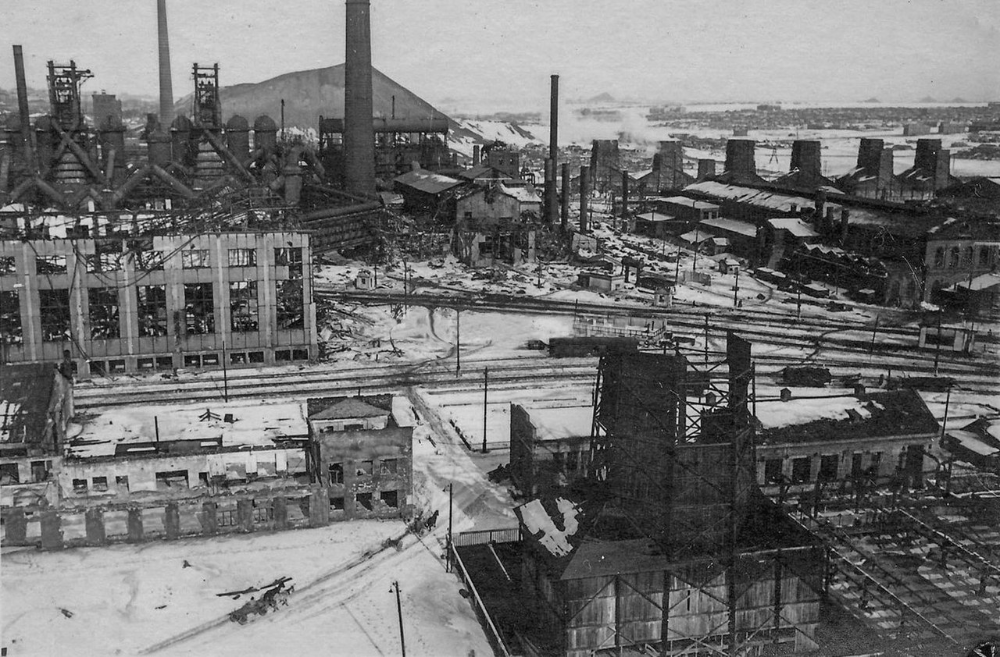 Панорама разрушенных заводов в городе Сталино (ныне — Донецк). 1943 год