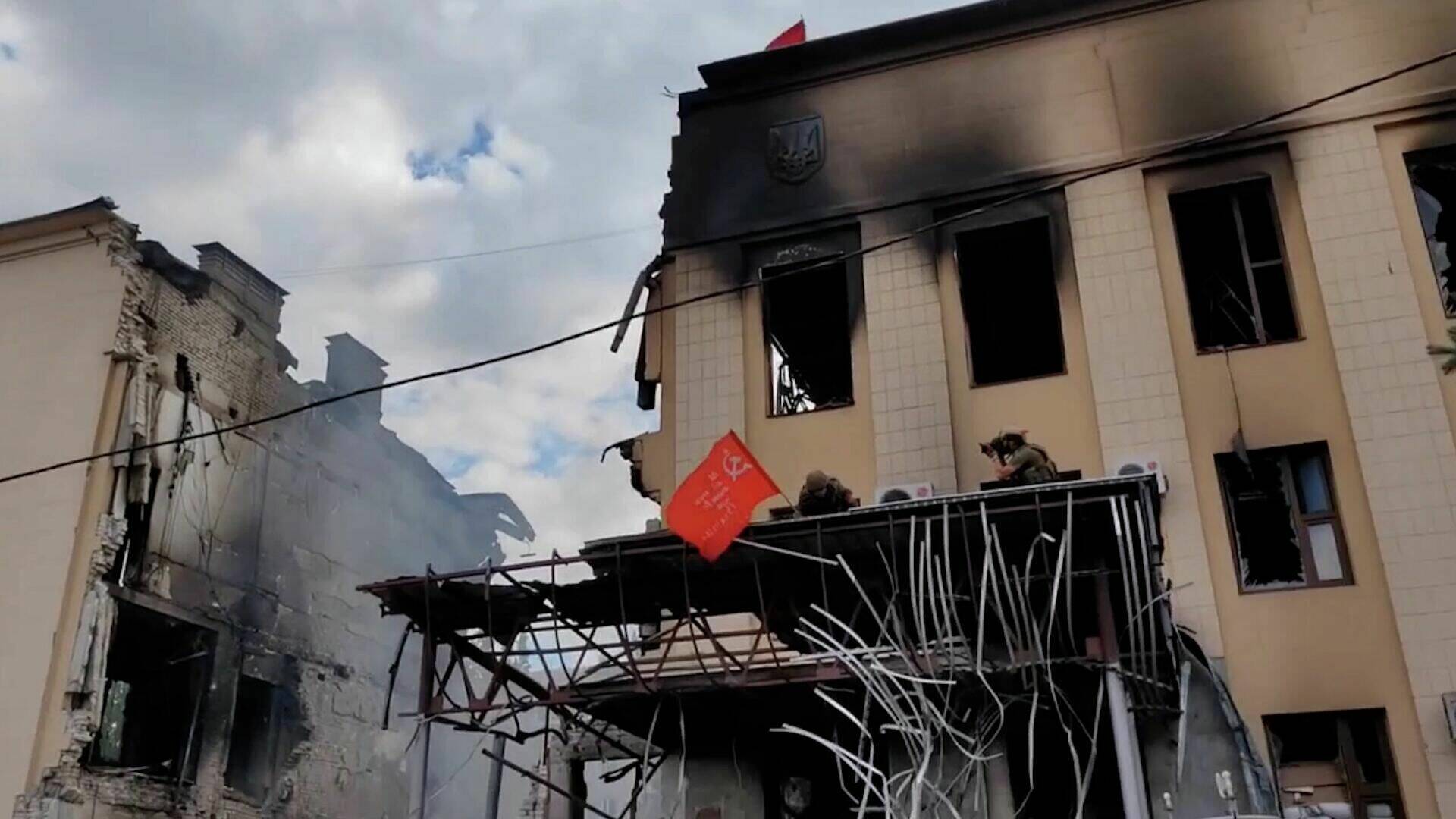 Знамя Победы в освобождённом Лисичанске