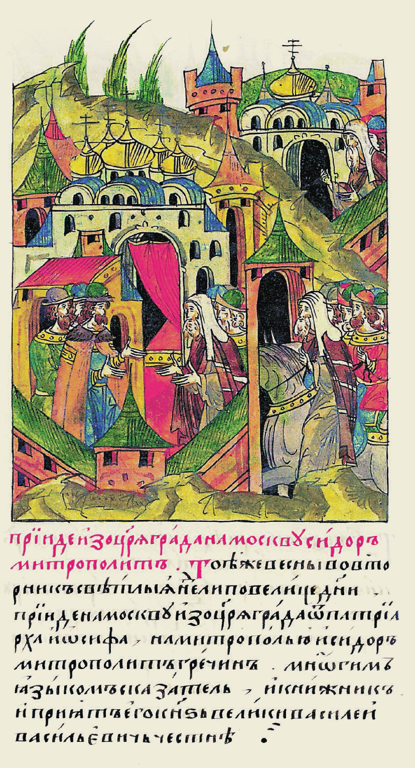 Резкий перелом наступил с приездом митрополита Исидора в Москву в марте 1441 г. Сведения о том, что здесь произошло, содержатся в ряде источников XV в. разного происхождения и сходятся на том, что начало конфликту положило торжественное богослужение в Успенском соборе. На светских людей, присутствовавших на службе, наиболее сильное впечатление, по-видимому, произвело публичное «поминание» папы вместо принятого по традиции поминания Восточных патриархов. Для духовных лиц более существенным было то, что по окончании службы по приказу митрополита публично зачитали текст буллы папы Евгения IV с изложением условий Флорентийской унии… В наиболее ранних летописных свидетельствах обрисована картина общего единодушного отпора еретику, что подчеркивалось, в частности, последовательным употреблением глаголов множественного числа — «поимаша», «посадиша».