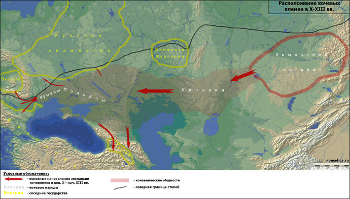 В этих условиях половцы не только смогли восстановиться от поражений начала XII в., но с 40-х годов начали регулярно вторгаться в русские земли как для участия в противоборстве русских князей, так и ради добычи.
