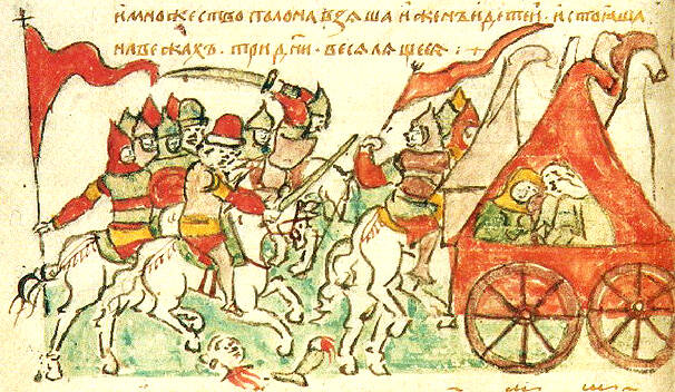 Первое летописное упоминание о появлении половцев у границ Руси относится к 1055 г. и содержится в одном из списков «Повести временных лет». В тексте указано: «В семъ лете приходи Болушь с половьци, и сотвори Всеволодъ миръ с ними, и возвратишася половци вспять, отнюду же пришли».[1]Несмотря на отсутствие каких-либо указаний в источнике на воинственное поведение половцев, в отечественной историографии ещё с XIX в. утвердилось восприятие кочевников, как враждебной «азиатской» силы, препятствующей экономическому и политическому развитию Руси.