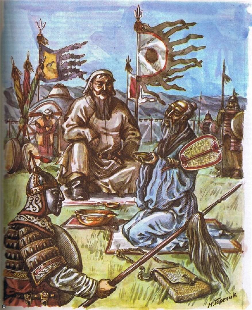 Чингиз-Хан и китайский посол. Современная картина.