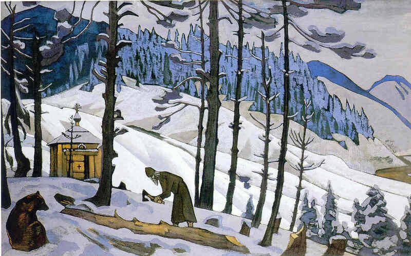 При всей необычности Сергиева подвига, не следует все же забывать, что избранное им лесное урочище (Маковец) находилось в четырнадцати верстах от Радонежа и в десяти - от Хотьковского монастыря, где постриглись его родители и брат. Оттуда или из другого места навещал его игумен Митрофан, кто-то снабжал его, хотя и скудно, хлебом, за «укрухом» которого каждый день являлся из чащи укрощенный медведь. Двадцатилетний Варфоломей еще не отважился удаляться на десятки и сотни верст от человеческого жилья, как это сделают его ученики. Но Маковецкая пустынь уже не пригородный монастырь. Жизнь в ней уже северная Фиваида, среди зверей и бесовских страхований, среди природы, суровой к человеку, требующей от него труда в поте лица. В последнем уже дано отличие северной трудовой Фиваиды от южной, созерцательной, - Египта.