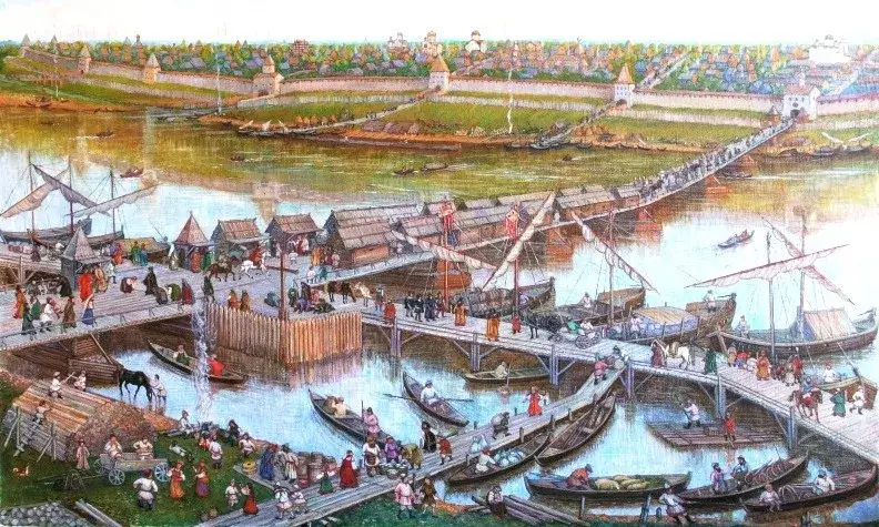 Великий мост через Волхов (рисунок), летописи упоминают о нем начиная с X века.