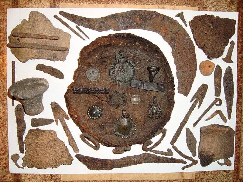 Украшения и бытовой инвентарь из археологических раскопок в Верхнем Поволжье.