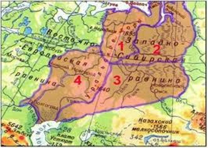 Проекция территории Волжской Болгарии (середина XIII века) на современную карту. Цифрами обозначены: 1 – провинция Ура; 2 –провинция Байгул; 3 – Провинция Тубджак; 4 – центральная территория Болгарии с европейскими провинциями.