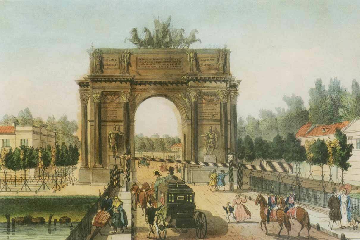 Нарвские триумфальные ворота в Санкт-Петербурге. 1830-е годы. Акварель К.П. Беггрова с оригинала К.-Ф. Сабата