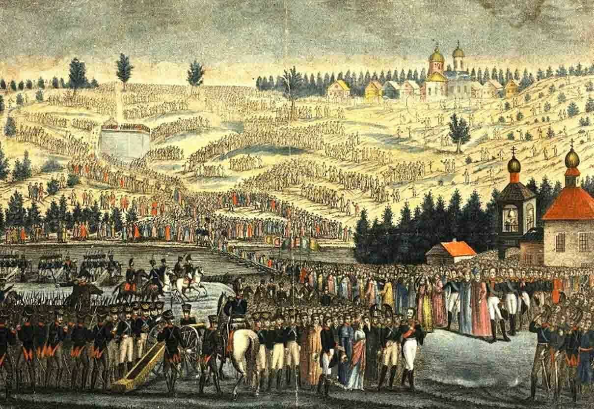 В 1837 году в России праздновалось 25-летие Бородинской битвы. В этом году Михаил Лермонтов написал самое знаменитое стихотворение об этом сражении, а в Москве было возобновлено строительство второго храма Христа Спасителя. Строительство первого храма было начато еще при Александре I. 25 декабря 1812 года, когда последние наполеоновские солдаты покинули территорию России, император Александр подписал Высочайший манифест о построении храма в Москве. Он задумывался как коллективный кенотаф воинов Русской армии, погибших в войне с Наполеоном, а на его стенах предполагалось начертать имена офицеров, павших в Отечественной войне и Заграничных походах. 12 октября 1817 года, в пятилетнюю годовщину отступления французов из Москвы, в присутствии Александра I на Воробьевых горах был заложен камень храма по проекту Александра Витберга. Однако по восшествии на престол Николая I строительство пришлось остановить. По официальной версии, это было сделано по причине недостаточной надежности почвы; по неофициальной — из-за растрат. Новый храм решили строить недалеко от Кремля, на берегу Москвы-реки, там, где прежде стоял Алексеевский монастырь.
