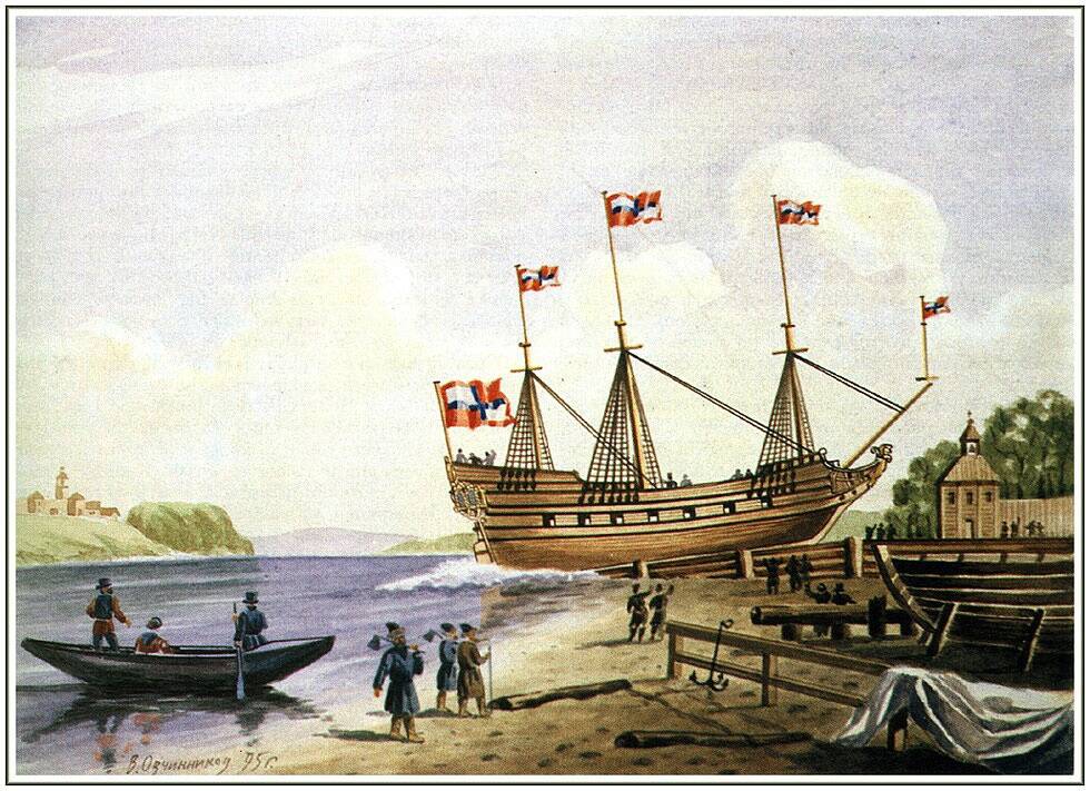 И.Овчинников. «Спуск на воду корабля «Орёл». Первый русский парусный корабль западноевропейского типа. Источник: kamyshinstar.ruЧто на самом деле означают цвета российского флага?