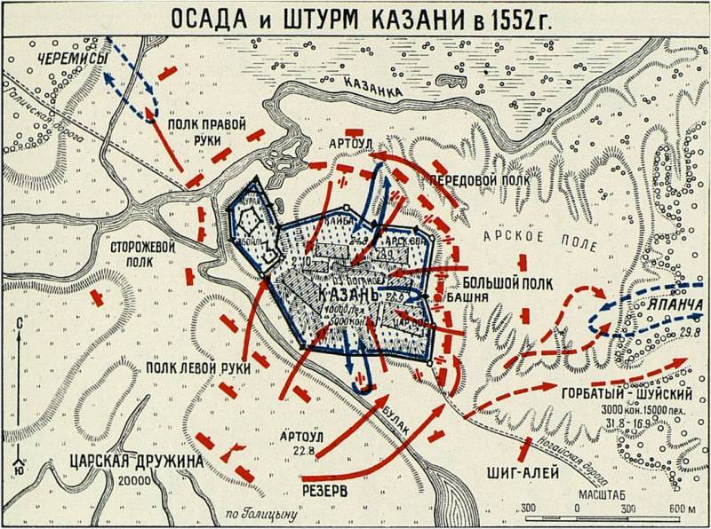 Вопрос о покорении последнего оплота татарской угрозы на Востоке занимал ум молодого Ивана IV в первые годы его самостоятельного правления. Предпринятые им походы 1548 и 1550 годов не привели к поражению враждебного государства, и только третий поход, осенью 1552 года, завершил историческое дело московских государей. Покорение Казани не только в самом Русском государстве, но и в зарубежных странах было воспринято как событие огромного исторического значения. Взятие Казани было большой исторической заслугой Ивана Грозного - «человека с сильной волей и характером».