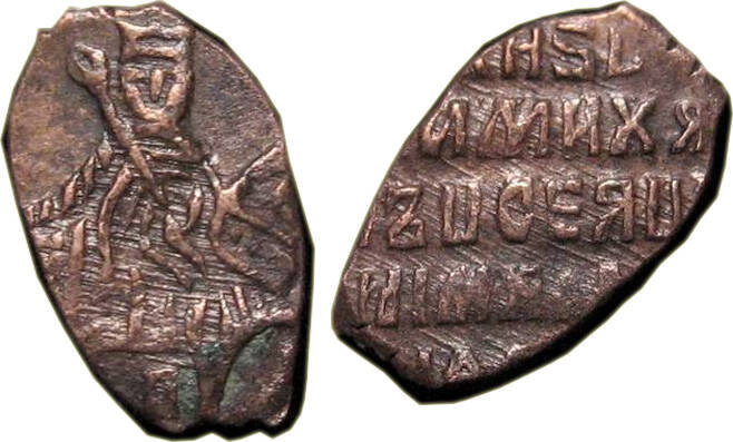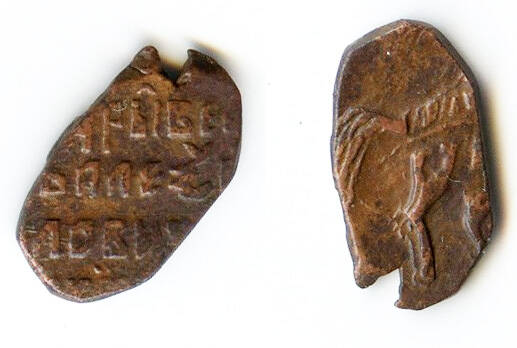 Медная "чешуя" - самая мелкая медная монета, массой 0,24 грамма с фрагментом изображения всадника.