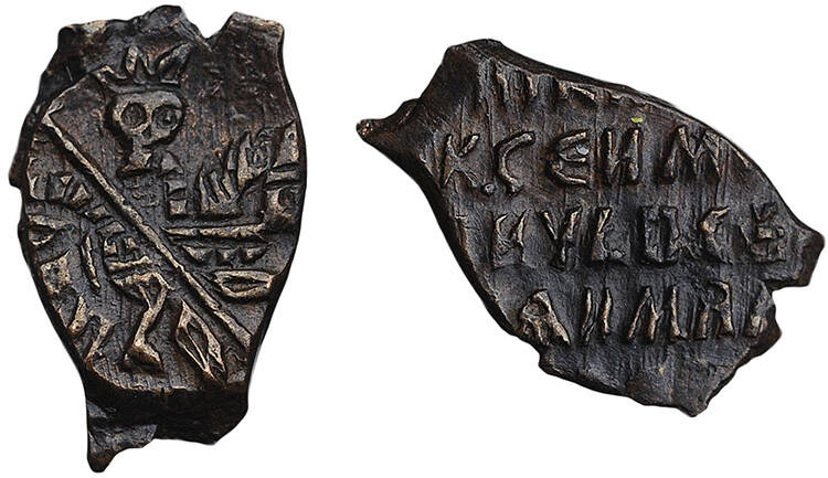 Медная "чешуя" Кукенойского монетного двора, вместо св. Георгия изображен всадник-смерть.