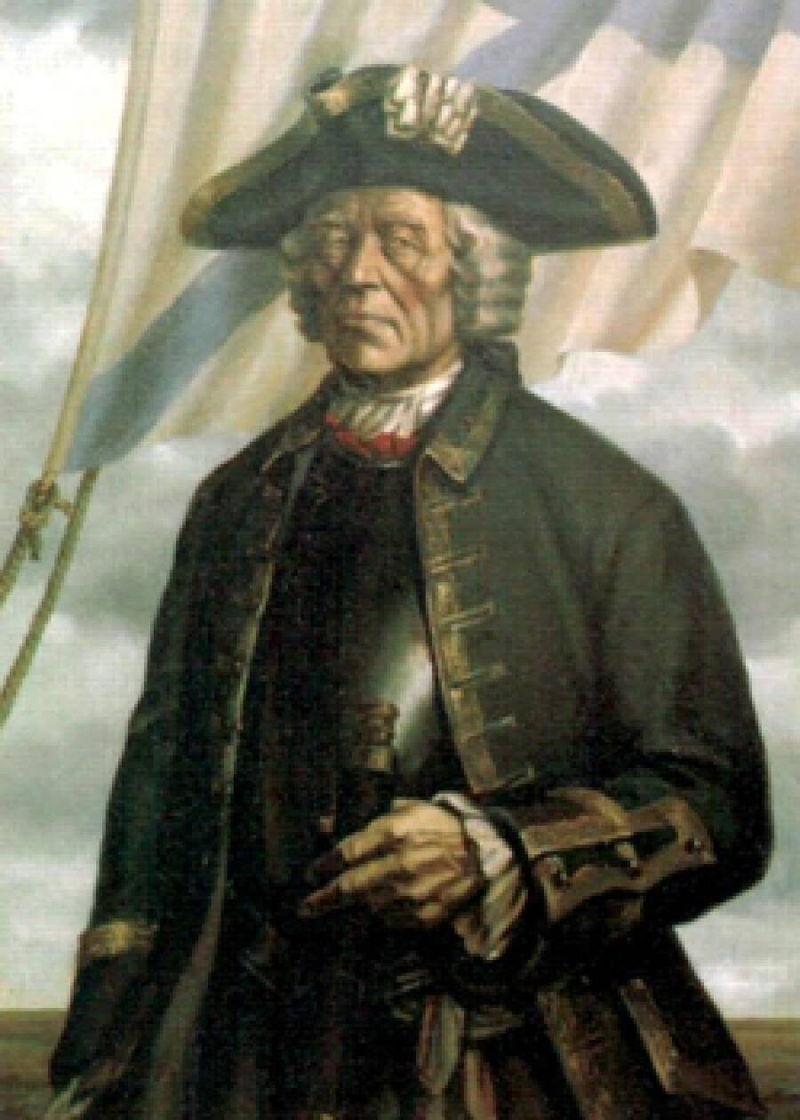 Беринг Витус Йонассен родился в 1681 году в датском городе Хорсенс, закончил кадетский корпус в Амстердаме в 1703 году, в том же году принят в Балтийский флот в чине подпоручика, в 1707 году произведен в поручики. В 1710 году переведен на Азовский флот, произведен в капитан-лейтенанты, командовал шнявой «Мункер». В 1712 году переведен в Балтийский флот, в 1715 году произведен в капитаны 4 ранга. В 1716 году командовал кораблем «Перл». В 1717 году произведен в капитаны 3 ранга. В 1719 году командовал кораблем «Селафаил». В 1720 году произведен в капитаны 2 ранга, командовал кораблем «Мальбург», затем - кораблем «Лесное». В 1724 году уволен по прошению со службы, а затем вновь принят на службу командиром «Селафаила» в чине капитана 1 ранга. С 1725 по 1730 гг. - начальник Первой Камчатской экспедиции. В середине лета 1728 года обследовал и нанес на карту Тихоокеанское побережье Камчатки и Северо-Восточной Азии. Открыл два полуострова (Камчатский и Озерный), Камчатский залив, Карагинский залив с островом Карагинским, залив Креста, бухту Провидения и остров Святого Лаврентия. В Чукотском море, пройдя пролив (позже названный Беринговым), экспедиция достигла 62° 24′ с. ш., но из-за тумана и ветра не обнаружила землю и повернула назад. В следующем году Берингу удалось продвинуться от Камчатки на восток на 200 километров, осмотреть часть камчатского берега и выявить Авачинский залив и Авачинскую бухту. Первооткрыватель впервые выполнил съемку свыше 3500 километров западной береговой черты моря, позже названного Беринговым. В 1730 году произведен в капитан-командоры.