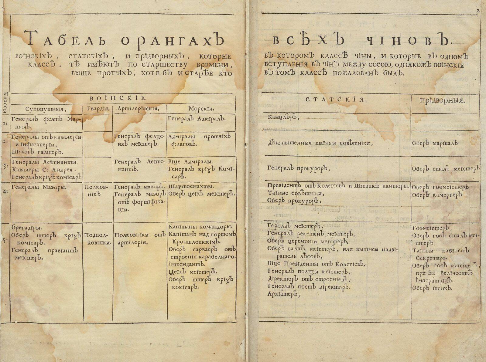 Первый лист Табели о рангах. 1722 год.Источник: kp.rusneb.ru