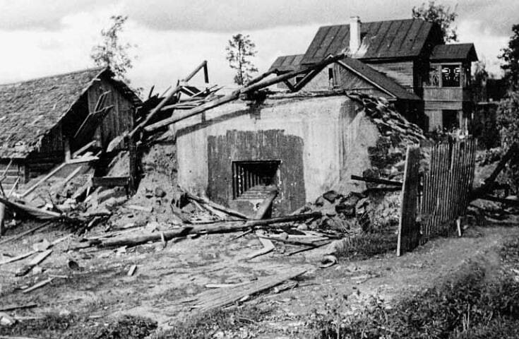 Именно здесь немцы обрушили на ополченцев свой главный удар. После артиллерийского и авиационного налета на наши позиции пошли танки, пехота, штурмовые группы с взрывчаткой и огнеметами. Целые сутки шел бой. У ополченцев заканчивались боеприпасы, часть огневых точек немцы уничтожили. На следующий день все было кончено — кто-то из ополченцев погиб, кто-то попал в плен. Лишь немногие сумели выйти из боя и добраться до своих. Бойцы отдельных гарнизонов отказались сдаваться в плен и подорвали себя вместе со своими небольшими огневыми точками.
