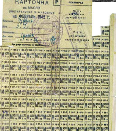 До войны Ленинград жил «с колес» — больших складов для продовольствия в городе не было. И когда немцы перерезали все пути, ведущие в город, продовольствие подвезти стало почти невозможно. Ленинградцев ожидал голод. Поэтому сразу после начала блокады появились карточки — купить можно было только ограниченное количество еды. Уже в октябре появились первые случаи голодных обмороков на улицах и рабочих местах. В ноябре ленинградцы начали умирать от голо - да. Сначала умерших было немного, но чем дольше продолжался голод, тем больше людей погибало. В декабре смертность от голода стала массовой. Люди умирали везде — дома в постели, по пути на работу, на рабочем месте.