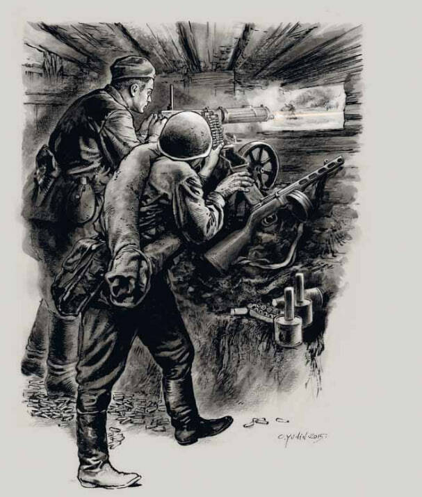сумели накрыть и уничтожить почти все немецкие пулеметные гнезда в первой траншее на берегу. Наши бойцы в окопах ждали сигнала атаки и кричали: «Это вам за Ленинград! Это за всех тех, кого вы убили в городе!».