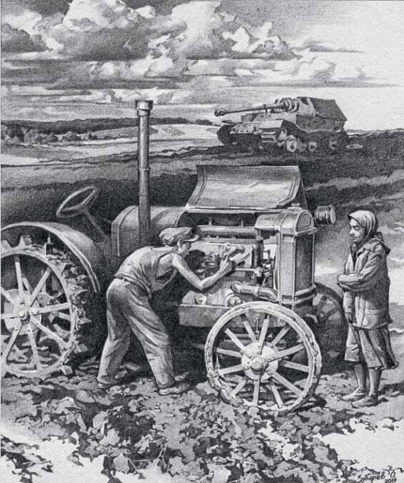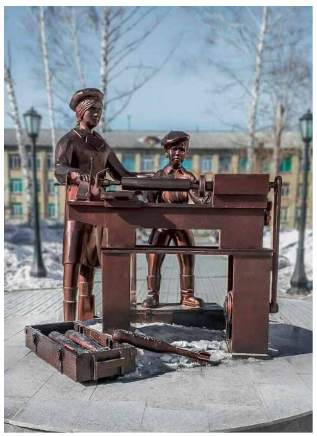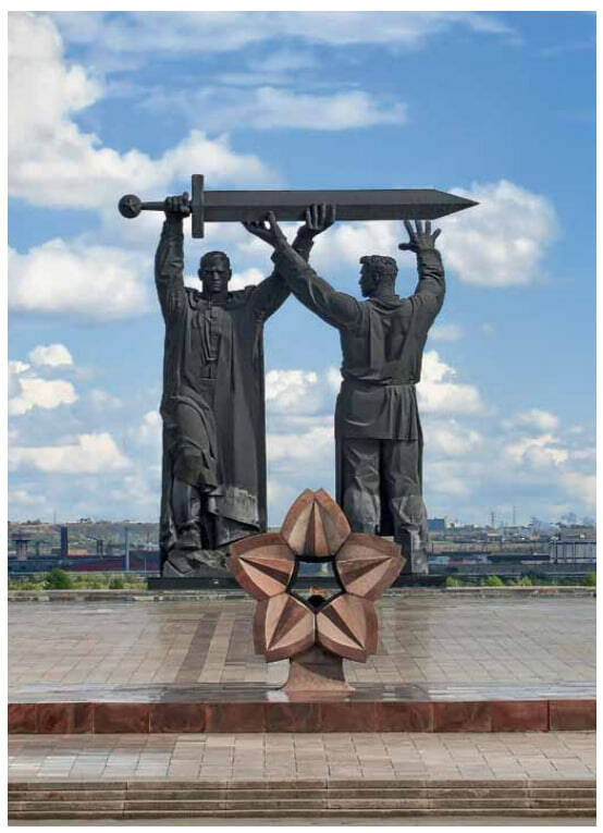 В Магнитогорске, на Урале, стоит большой памятник — рабочий передаёт бойцу Красной Армии огромный меч. Это символ титанического труда — как умственного, так и физического, который проделала страна, чтобы дать нашей Армии оружие Победы. В Уральских горах был выкован этот меч. В Сталинграде Родина-Мать подняла его для удара по врагу. В Берлине, после Победы, советский воин опустил его. СССР достиг Победы не только на полях сражений, но и в тяжёлом труде в цехах заводов, и в блестящих инженерных и управленческих решениях конструкторов и руководителей.