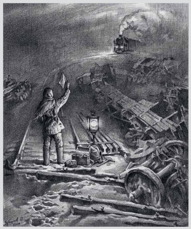 Когда нацисты поняли, что им не удастся разрушить и завоевать СССР, то приняли решение уничтожать всё, что можно, перед отступлением. Это называлось «выжженная земля». Нацисты сжигали дома, взрывали мосты, выводили из строя линии электропередач, связи. Для уничтожения железной дороги они придумали специальное приспособление — шпалолом. Всё это для того, чтобы замедлить наступление Красной Армии.